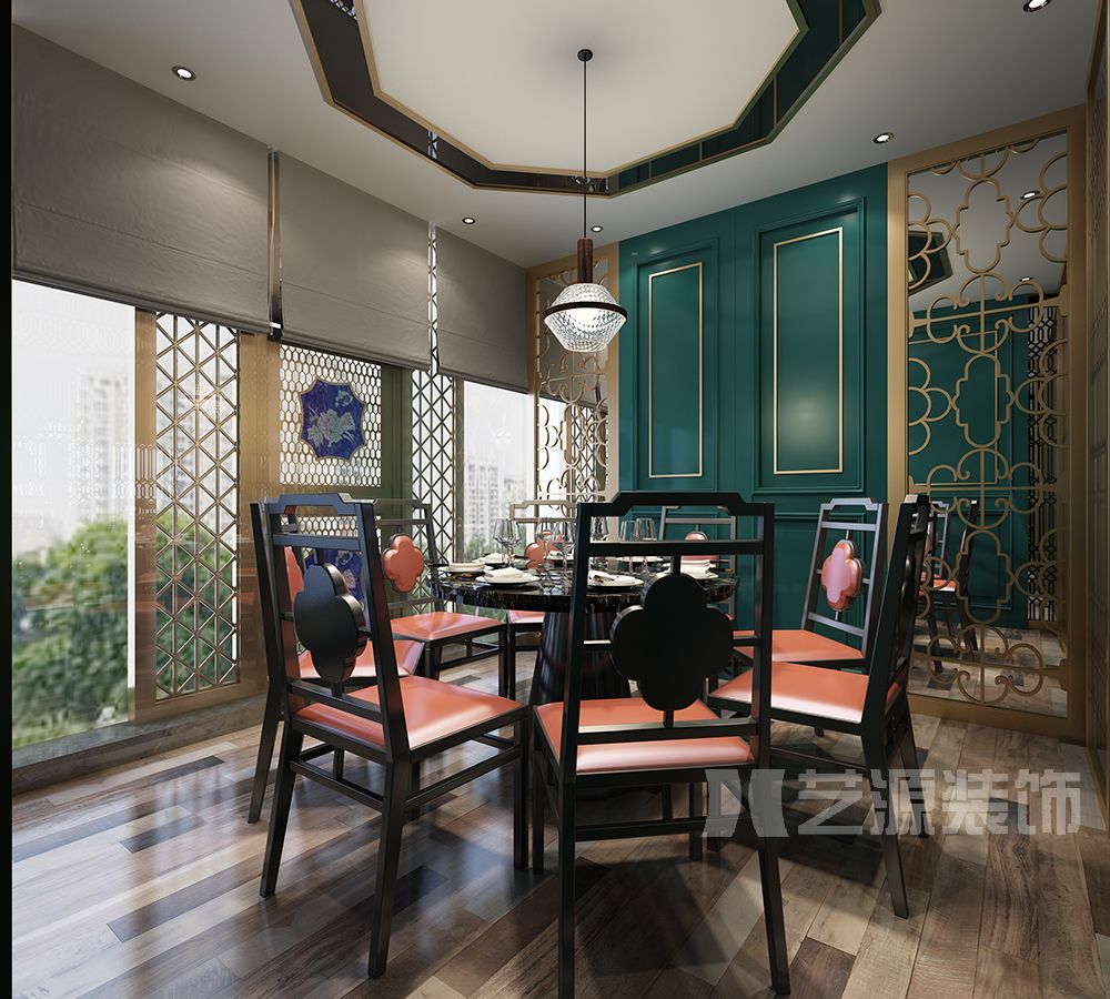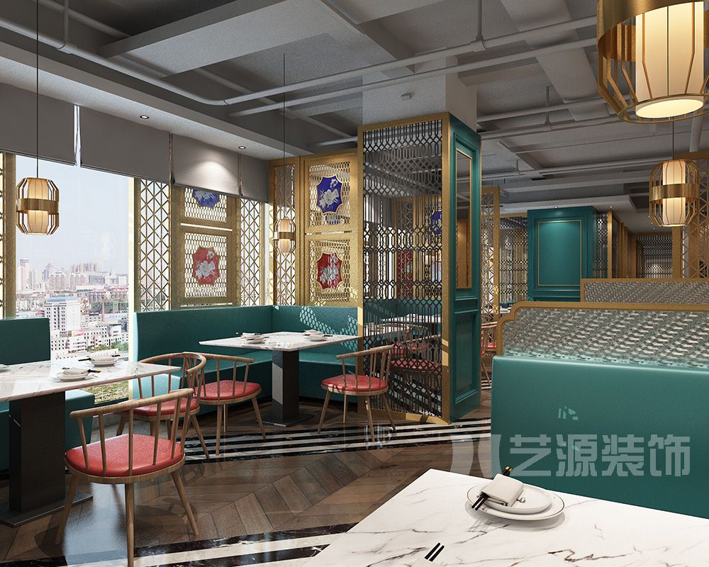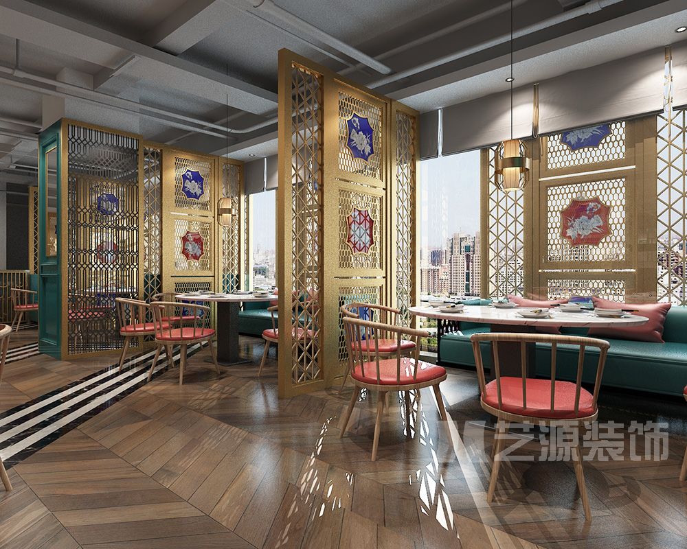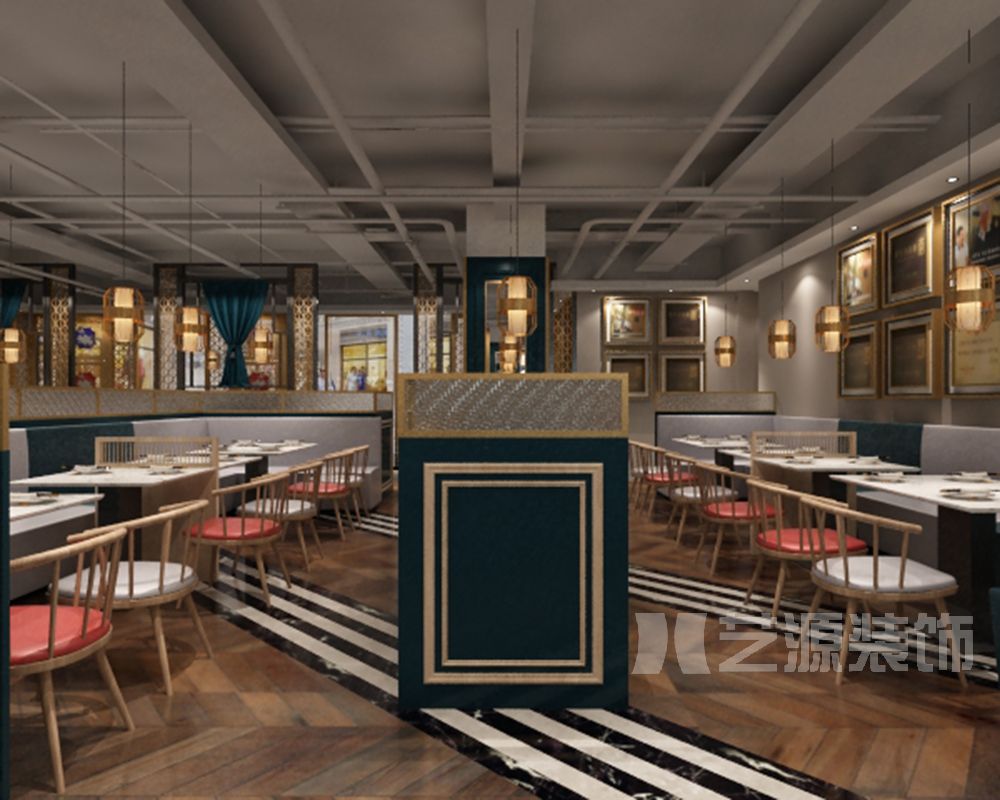 主要材料:木紋磚、古銅不銹鋼、乳膠漆、藝術(shù)玻璃